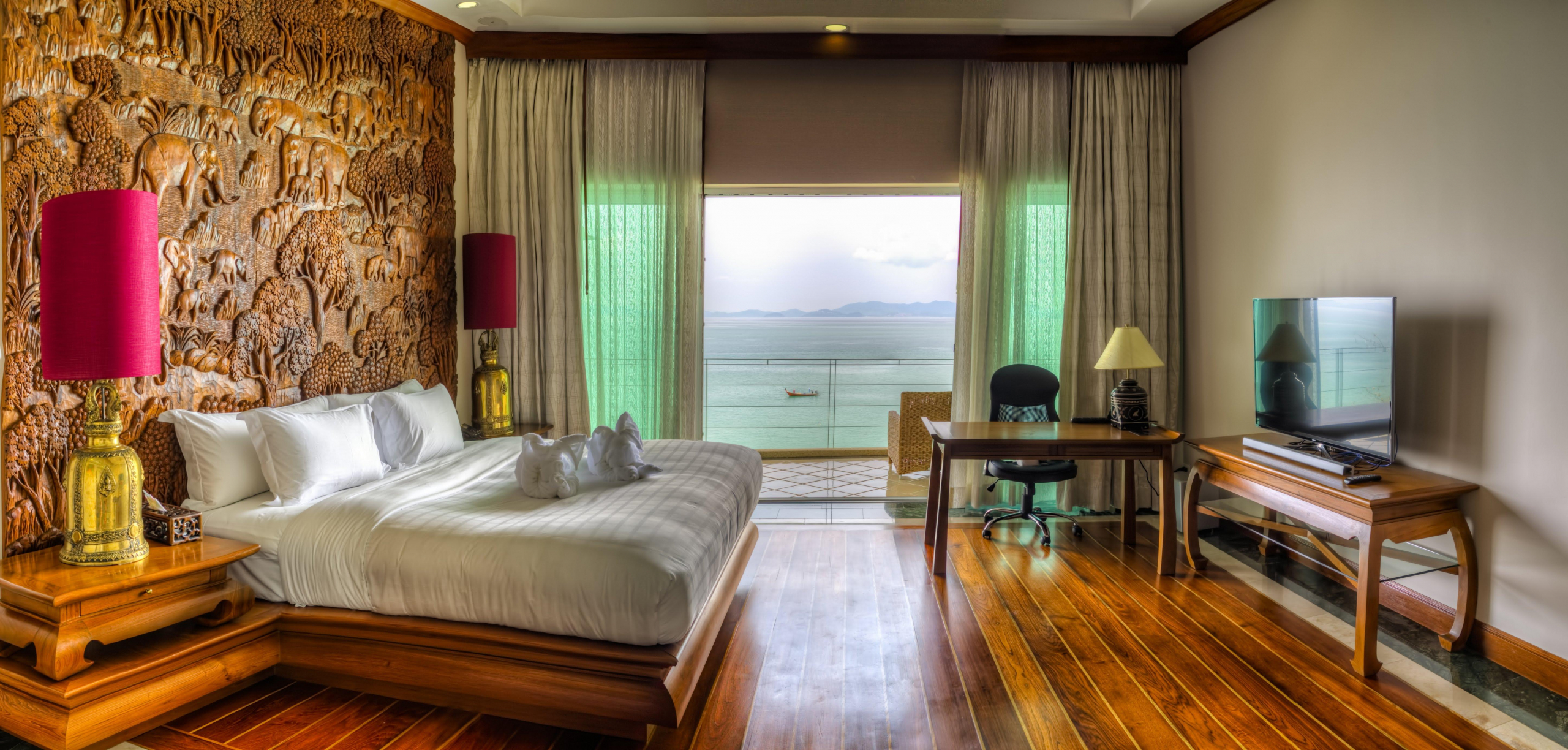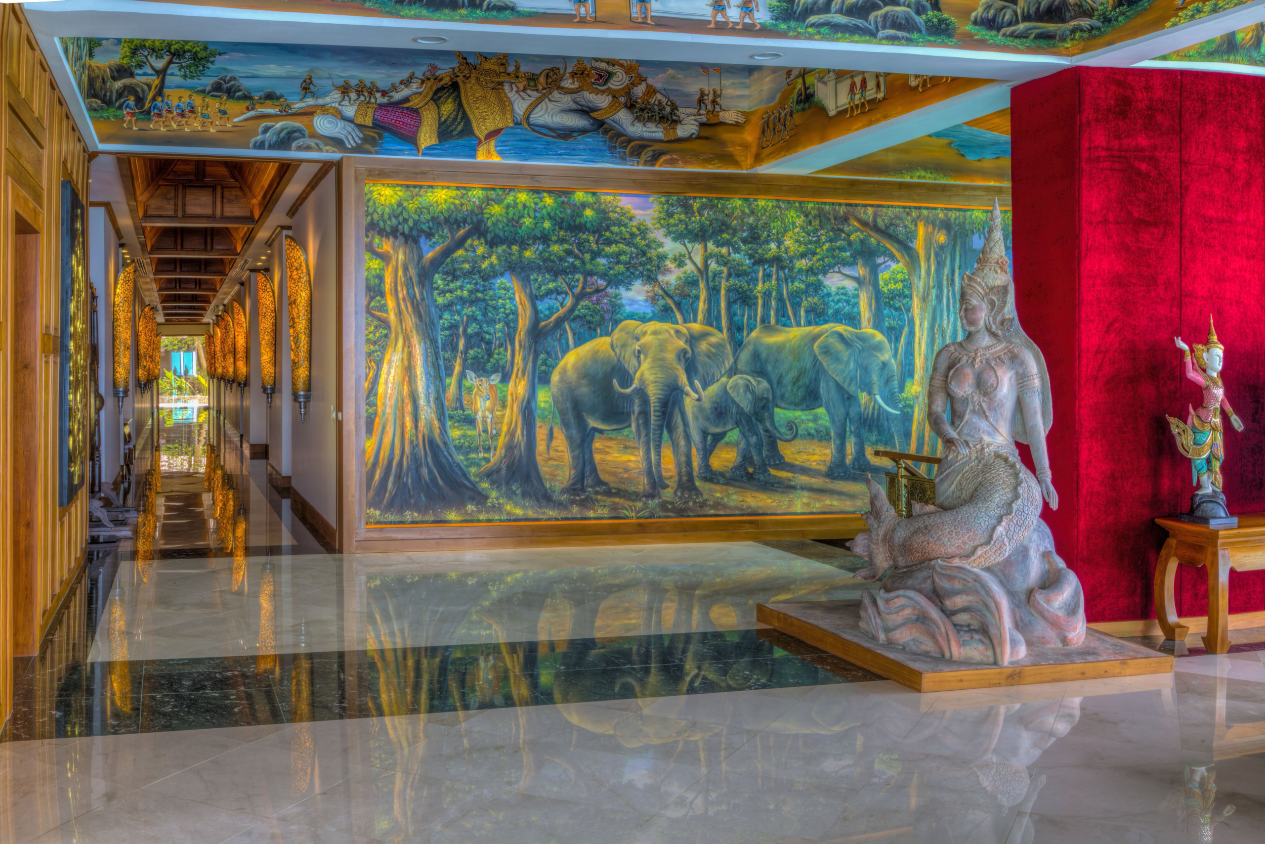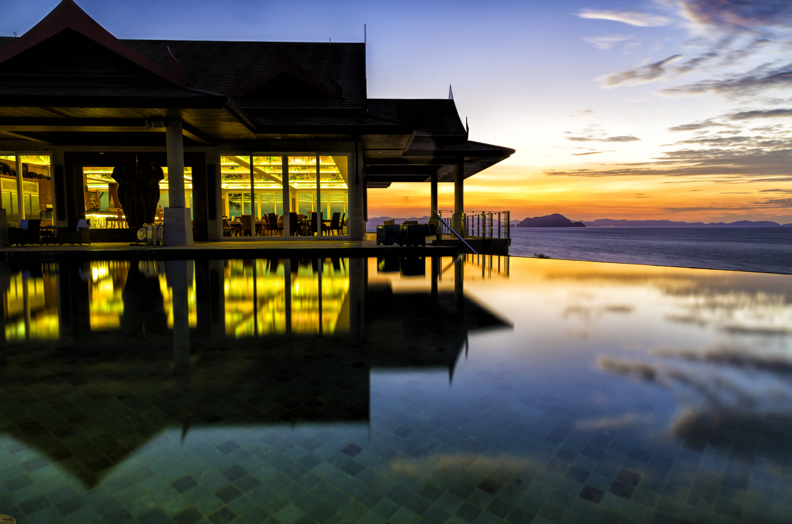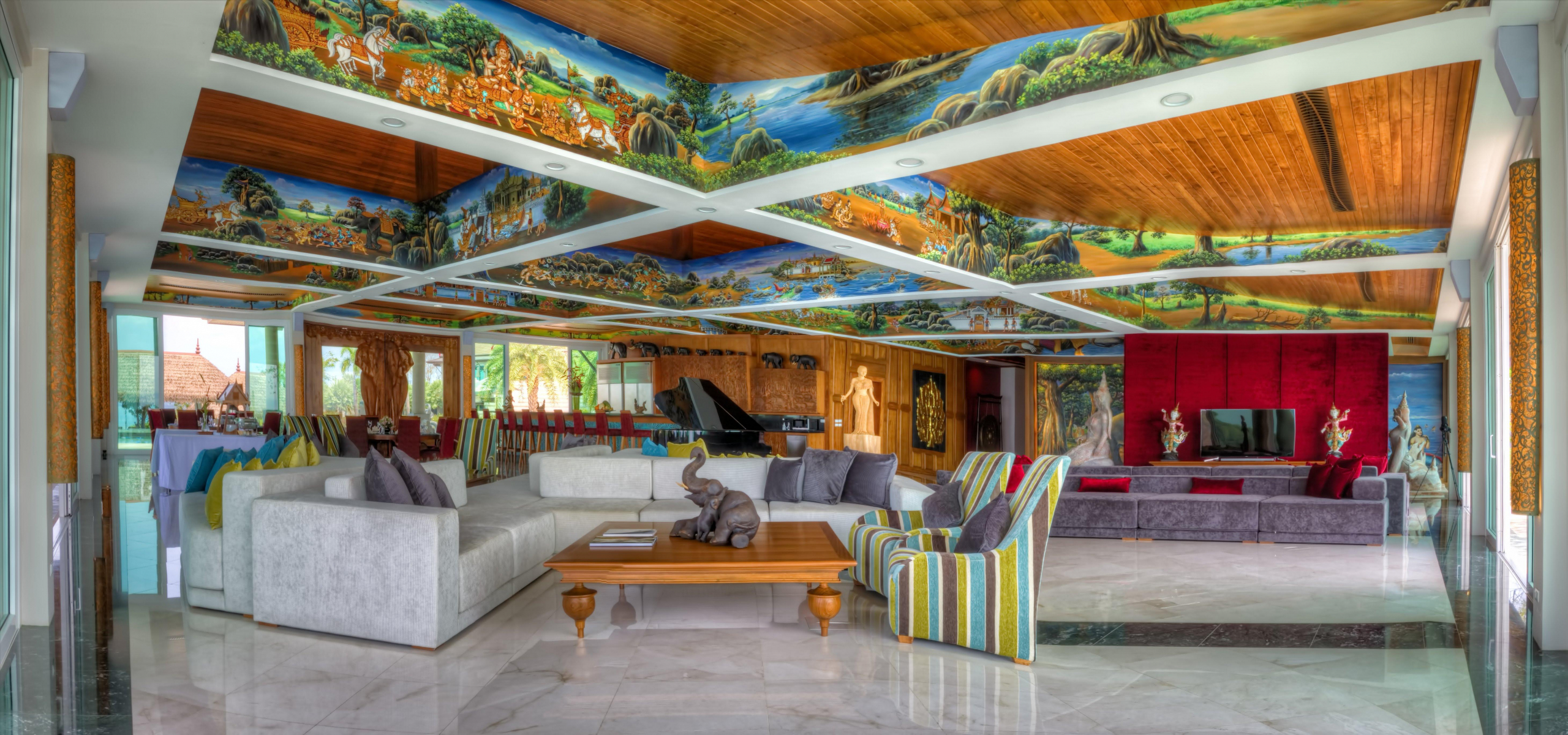 The upper villa has 7 spacious suites, a lounge area, a private patio and the ‘Great Room’, where families and friends can hang out together in 455 sqm, accommodating up to 20 dining guests. Spa with 7 private massage rooms, a Turkish bath, an infrared dry sauna, a full fitness centre and a small Muay Thai boxing area complete the offer. Just under the pool area there is a 300 visitors capacity amphitheatre that looks south towards Phi Phi Island, karaoke bar and entertainment center plus a 43-seat movie theatre